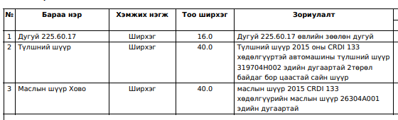 утас: "Таван толгой түлш” ХХК нь хүснэгтэд заасан бараа, ажил, үйлчилгээг нийлүүлэх хүсэлтэй аж ахуй нэгж байгууллагуудын хамтран ажиллах саналыг доор заасан хугацаанд нээлттэй хүлээн авч байна. Та бүхэн дараах бараа, ажил үйлчилгээний мэдээлэлтэй танилцана уу.