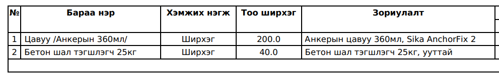 Таван толгой түлш” ХХК нь хүснэгтэд заасан бараа, ажил, үйлчилгээг нийлүүлэх хүсэлтэй аж ахуй нэгж байгууллагуудын хамтран ажиллах саналыг 3 хонгийн хугацаанд нээлттэй хүлээн авч байна. Та бүхэн дараах бараа, ажил үйлчилгээний мэдээлэлтэй танилцана уу.