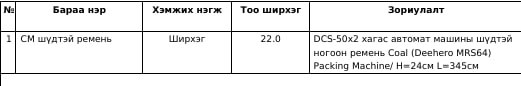 "Тавантолгой түлш ХХК нь хүснэгтэд заасан бараа, ажил, үйлчилгээг нийлүүлэх   хүсэлтэй аж ахуй нэгж байгууллагуудын хамтран ажиллах саналыг доор заасан   хугацаанд нээлттэй хүлээн авч байнаТа бүхэн дараах бараа, ажил үйлчилгээний мэдээлэлтэй танилцана уу.