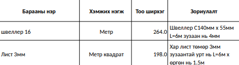 утас: "Таван толгой түлш” ХХК нь хүснэгтэд заасан бараа, ажил, үйлчилгээг нийлүүлэх хүсэлтэй аж ахуй нэгж байгууллагуудын хамтран ажиллах саналыг доор заасан хугацаанд нээлттэй хүлээн авч байна. Та бүхэн дараах бараа, ажил үйлчилгээний мэдээлэлтэй танилцана уу.
