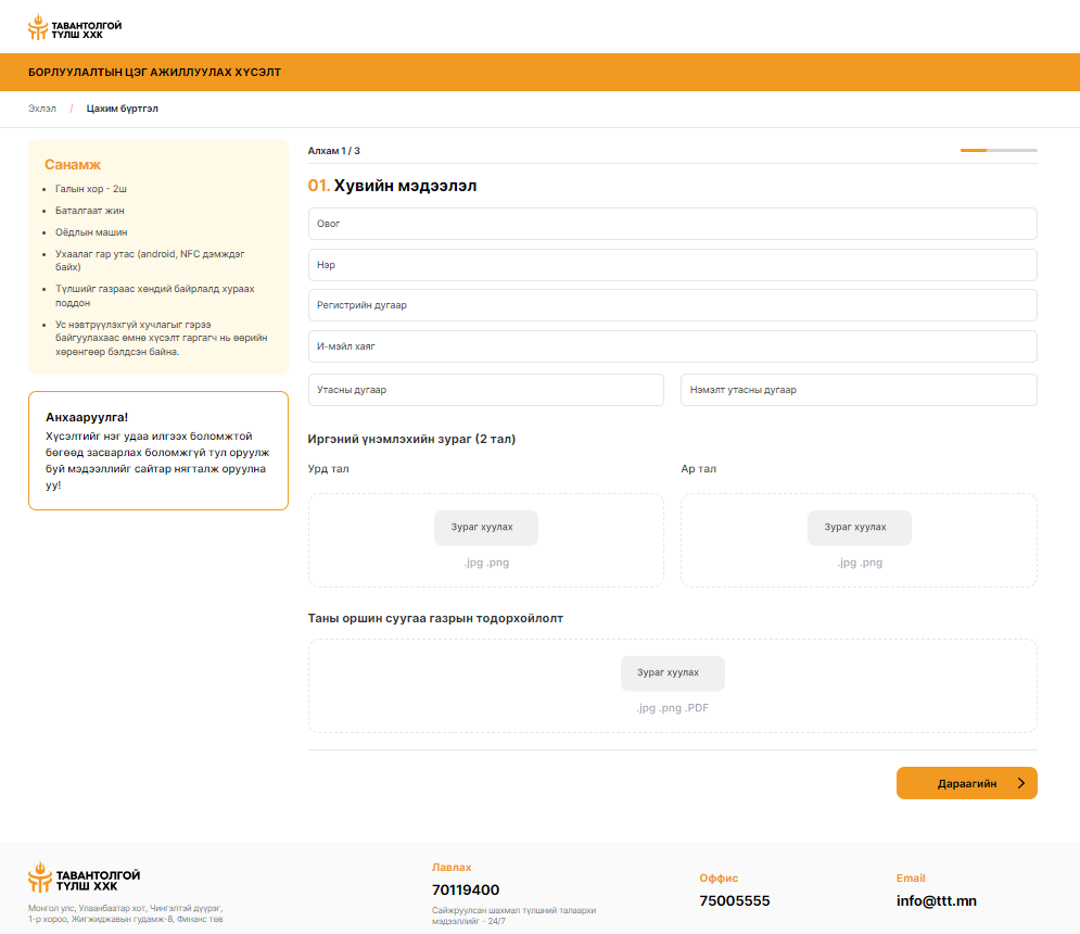 Тавантолгой түлш ХХК жил бүрийн есдүгээр сарын 15-аас дараа жилийн тавдугаар сарын 15 хүртэл галлагааны улиралд шахмал түлшийг нийслэлд 650 гаруй гэрээт цэгээр дамжуулан худалдан борлуулдаг билээ. Шахмал түлш худалдан борлуулах гэрээт цэгийг жил бүр https://burtgel.ttt.mn/ сайтаар нээлттэй зарлаж иргэдээс ирсэн материалыг НАОБТГ-тай хамтарсан ажлын хэсэг сонгон шалгаруулдаг юм. Энэ жилийн сонгон шалгаруулалтыг дээрх хаягаар иргэдээс энэ сарын 31-ийг дуустал хүлээн авна. Ирсэн материалыг ажлын хэсгийн гишүүд шалгаж шаардлага хангасан иргэнтэй хамтран ажиллах гэрээ байгуулан ажиллах юм.