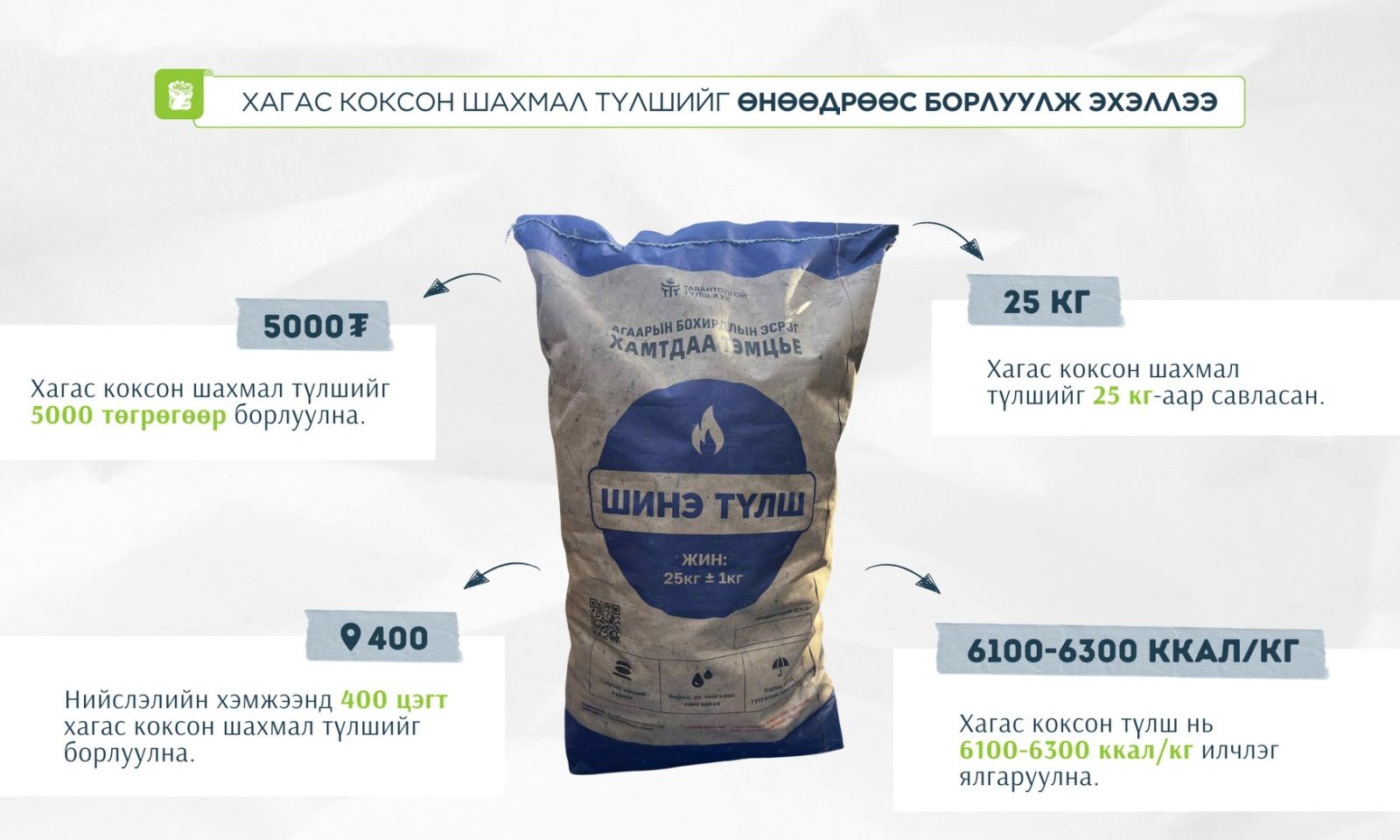 Тэрбээр "Аравдугаар сарын 1-нээс нийслэлд хагас коксон түлшийг борлуулна. Хагас коксон түлш нь ахуйн хэрэглээнд нүүрсийг хэрэглэж болох хамгийн боловсронгуй бүтээгдэхүүн юм. Хагас коксон түлшинд ШУА-ийн Хими, химийн технологийн хүрээлэн болон бусад лабораторийн хийсэн шинжилгээгээр