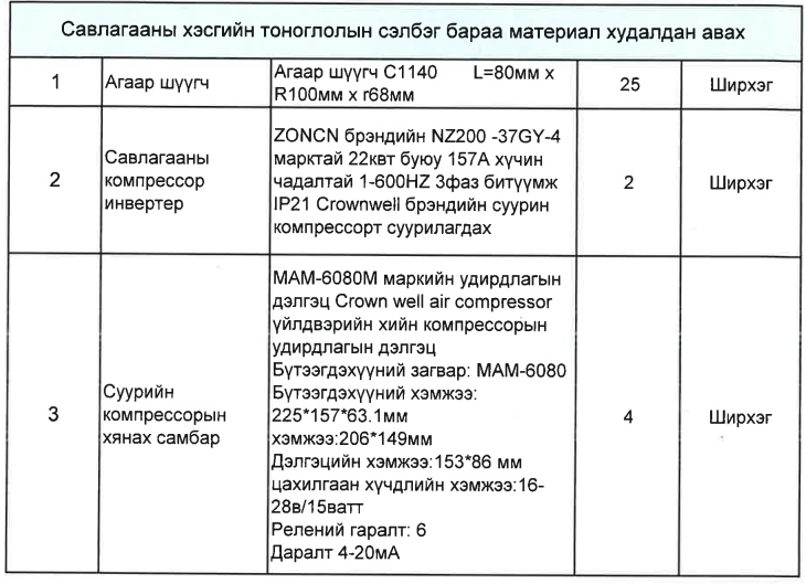 утас: "Таван толгой түлш” ХХК нь хүснэгтэд заасан бараа, ажил, үйлчилгээг нийлүүлэх хүсэлтэй аж ахуй нэгж байгууллагуудын хамтран ажиллах саналыг доор заасан хугацаанд нээлттэй хүлээн авч байна. Та бүхэн дараах бараа, ажил үйлчилгээний мэдээлэлтэй танилцана уу.