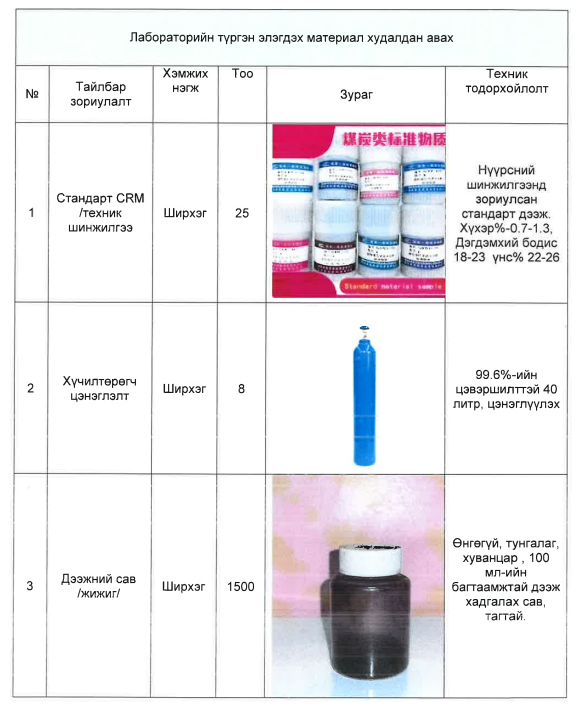 утас: "Таван толгой түлш” ХХК нь хүснэгтэд заасан бараа, ажил, үйлчилгээг нийлүүлэх хүсэлтэй аж ахуй нэгж байгууллагуудын хамтран ажиллах саналыг доор заасан хугацаанд нээлттэй хүлээн авч байна. Та бүхэн дараах бараа, ажил үйлчилгээний мэдээлэлтэй танилцана уу.