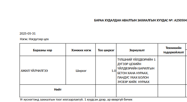 утас: "Таван толгой түлш” ХХК нь хүснэгтэд заасан бараа, ажил, үйлчилгээг нийлүүлэх хүсэлтэй аж ахуй нэгж байгууллагуудын хамтран ажиллах саналыг доор заасан хугацаанд нээлттэй хүлээн авч байна. Та бүхэн дараах бараа, ажил үйлчилгээний мэдээлэлтэй танилцана уу.