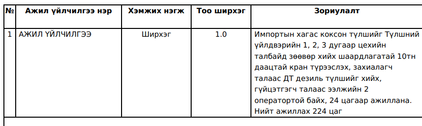 "Таван толгой түлш” ХХК нь хүснэгтэд заасан бараа, ажил, үйлчилгээг нийлүүлэх хүсэлтэй аж ахуй нэгж байгууллагуудын хамтран ажиллах саналыг 3 хонгийн хугацаанд нээлттэй хүлээн авч байна. Та бүхэн дараах бараа, ажил үйлчилгээний мэдээлэлтэй танилцана уу.