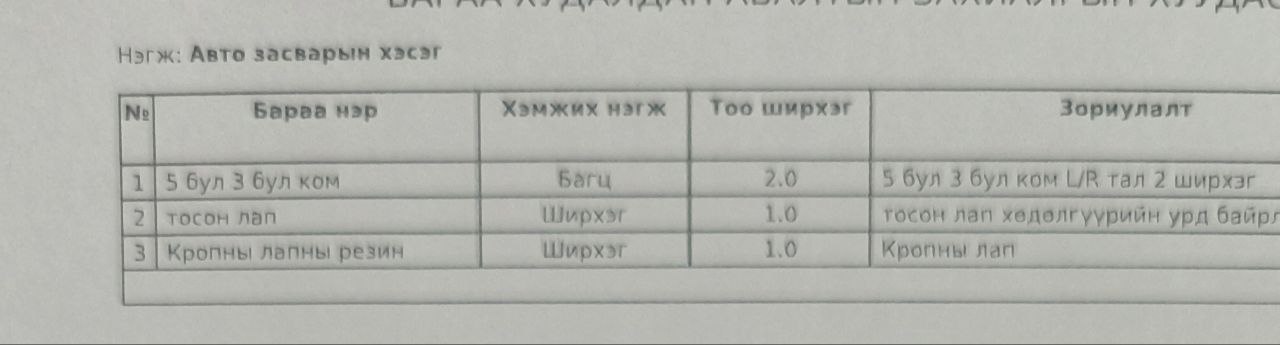 "Тавантолгой түлш” ХХК нь хүснэгтэд заасан бараа, ажил, үйлчилгээг нийлүүлэх хүсэлтэй аж ахуй нэгж байгууллагуудын хамтран ажиллах саналыг доор заасан хугацаанд нээлттэй хүлээн авч байна. Та бүхэн дараах бараа, ажил үйлчилгээний мэдээлэлтэй танилцана уу.