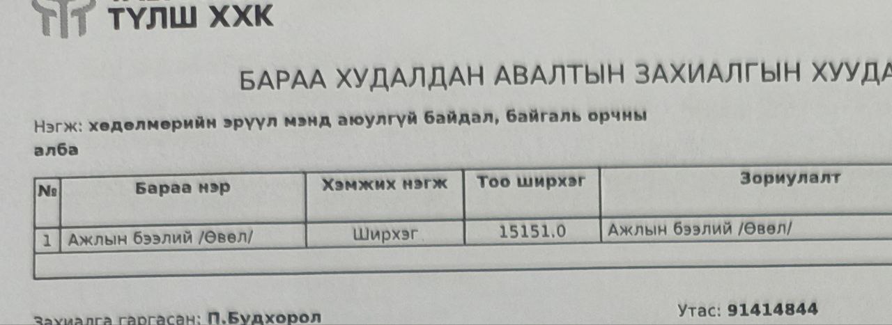 "Тавантолгой түлш” ХХК нь хүснэгтэд заасан бараа, ажил, үйлчилгээг нийлүүлэх хүсэлтэй аж ахуй нэгж байгууллагуудын хамтран ажиллах саналыг доор заасан хугацаанд нээлттэй хүлээн авч байна. Та бүхэн дараах бараа, ажил үйлчилгээний мэдээлэлтэй танилцана уу.