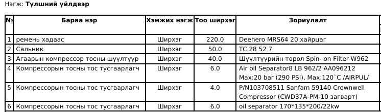 "Таван толгой түлш” ХХК нь хүснэгтэд заасан барааг нийлүүлэх хүсэлтэй аж ахуй нэгж байгууллагуудын хамтран ажиллах, бараа нийлүүлэх үнийн саналыг 3 хоногийн хугацаанд нээлттэй хүлээн авч байна. Та бүхэн дараах бараа, ажил үйлчилгээний мэдээлэлтэй танилцаж үнийн саналдоорх И-Мэйл хаягаар илгээнэ үү.