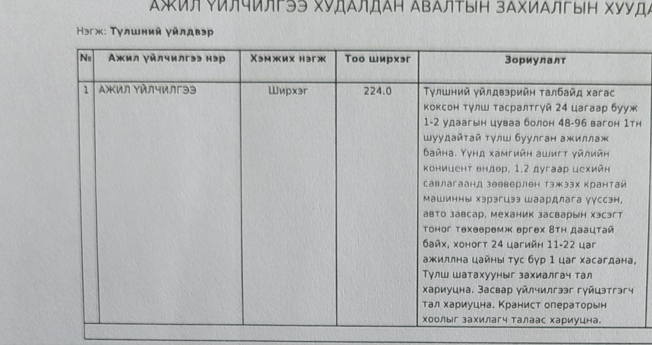 "Тавантолгой түлш” ХХК нь хүснэгтэд заасан бараа, ажил, үйлчилгээг нийлүүлэх хүсэлтэй аж ахуй нэгж байгууллагуудын хамтран ажиллах саналыг доор заасан хугацаанд нээлттэй хүлээн авч байна. Та бүхэн дараах бараа, ажил үйлчилгээний мэдээлэлтэй танилцана уу.
